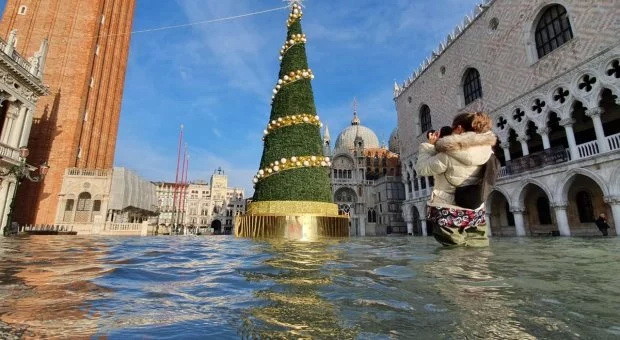 Напередодні Різдва у Венеції рівень води піднявся на 144 сантиметри вище за норму.