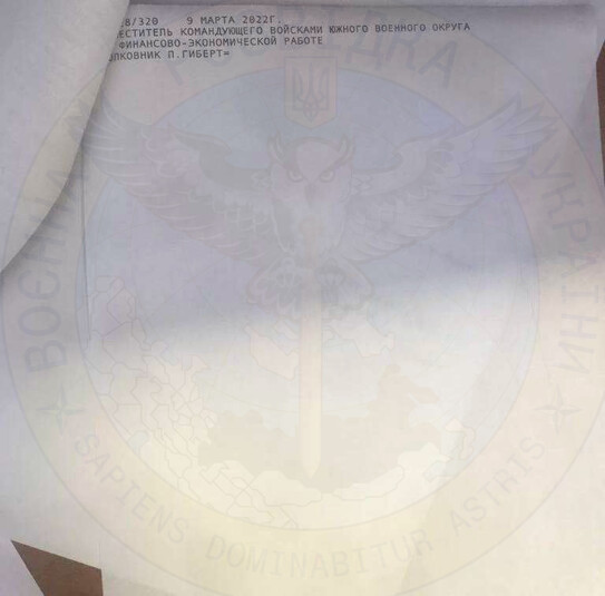 «Документ підписаний заступником командувача південного військового округу Петром Гібертом», – повідомляє розвідка.