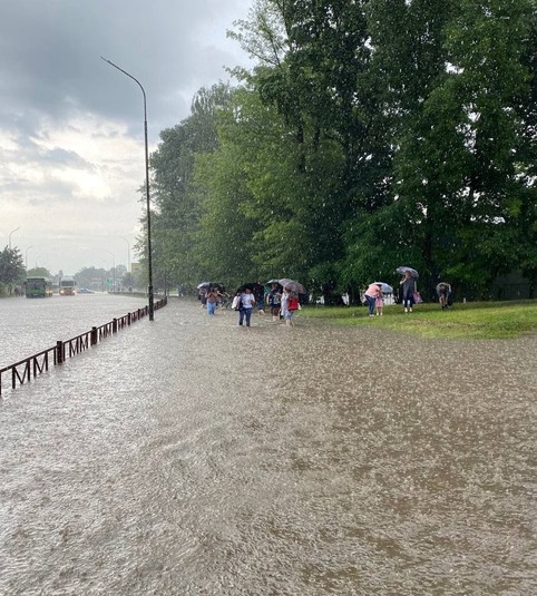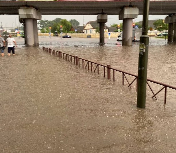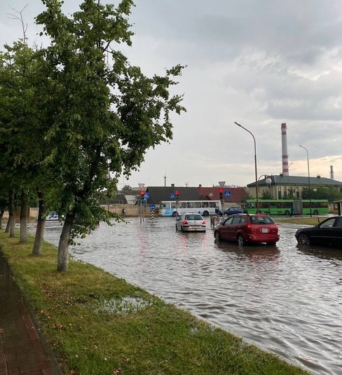 Після тривалої спеки в білоруському Ліді пройшла сильна злива з грозою, яка затопила вулиці міста. Про це пише newgrodno.by.