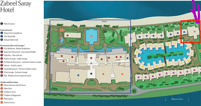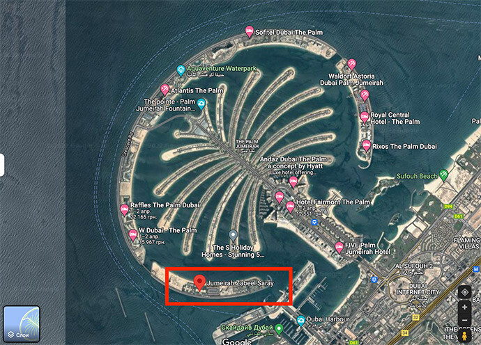 Вілла Кадирова розташовується на території п'ятизіркового готелю Zabeel Saray Royal Residences at Palm Jumeirah на відомій насипній пальмі Дубая Джумейра.