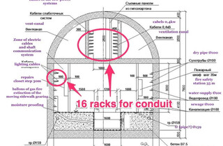 Як пише видання, Путін замовив цю споруду, враховуючи найгірші сценарії розвитку подій. Особливо вражають 16 кабельних стійок, кожна шириною приблизно фут, вмуровані у стіну нижнього тунелю. Вони призначені для кабелів-«каналів», які можуть нести електрику, освітлення, мідний дріт та оптоволоконний кабель, необхідний для командного пункту.