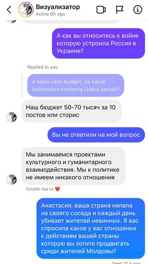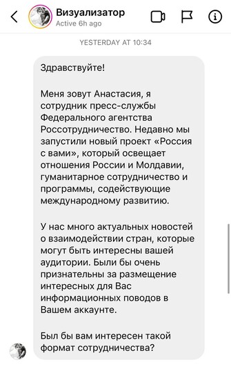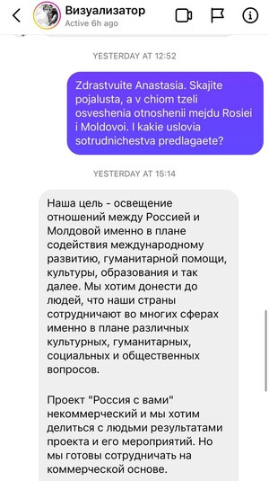 Молдовська журналістка Ната Албот розповіла, як федеральне агентство «Россотруднічество» намагалося за гроші просунути свою пропаганду в соціальних мережах. Так, на сторінці у Facebook журналістка опублікувала скріншоти своєї переписки із представниками агентства. Наті Албот від імені «Россотруднічества» пропонували 50-70 тисяч рублів (26-36 тисяч гривень – ред.) за 10 замовних постів. Розповідати просили про «стосунки Росії та Молдови», «гуманітарне співробітництво і програми» та інше.