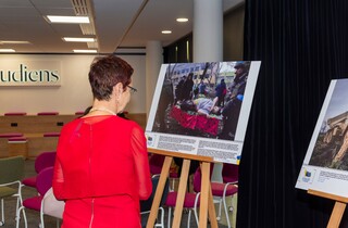 Вона також подякувала українським журналістам «за силу, любов і мужність у донесенні правди світові». Також на відкритті виставки виступили керівники французької журналістської профспілки, президентка МФЖ Домінік Прадалє, представники газети Le Figaro і Agence France-Presse. Останні подарували НСЖУ альманах памʼяті Армана Солдіна, який загинув в Україні.