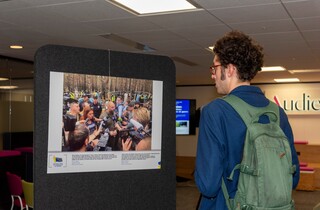Під час офіційного відкриття продемонстровано відео про роботу журналістів під час війни в Україні, умови їхньої роботи та те, як Національна спілка журналістів України допомагає українським та міжнародним медіа у їхній роботі на передовій.