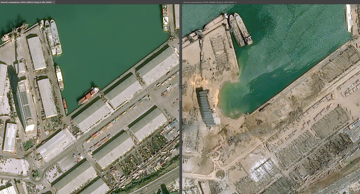Також компанія Airbus Space опублікувала супутникові знімки порту в Бейруті до і після масштабного вибуху, в результаті якого загинули щонайменше 135 і постраждали близько чотирьох тисяч осіб.