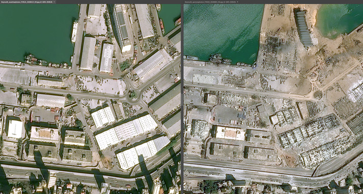 Знімки до вибуху зроблені 25 січня цього року, після вибуху — 5 серпня 2020 року.