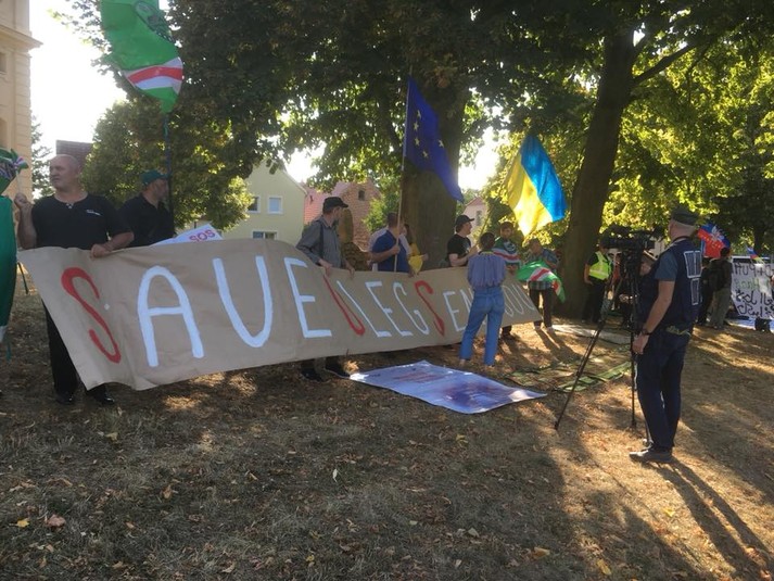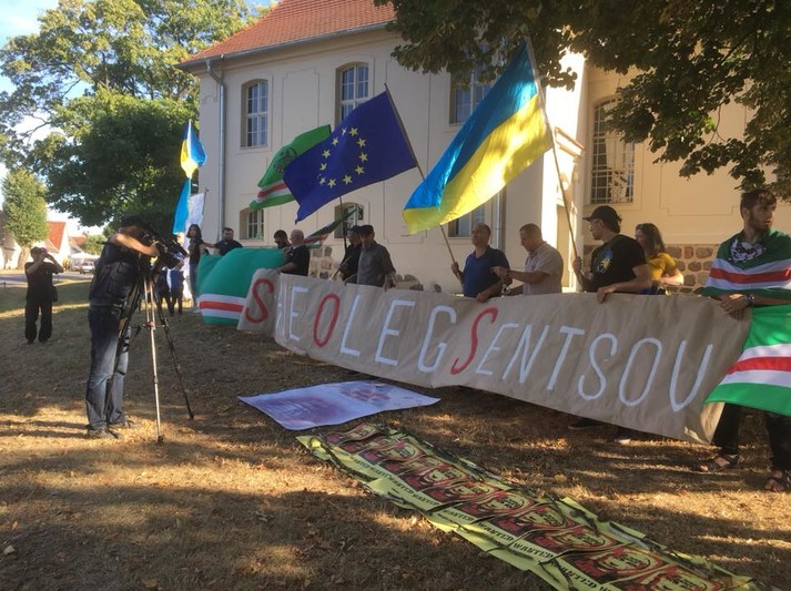 «Зупиніть вбивство Сенцова». У Німеччині пікетували замок, де зустрічалися Путін і Меркель