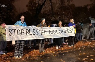 «Зупиніть воєнні злочини Росії»: у Празі під посольством РФ пройшов пікет