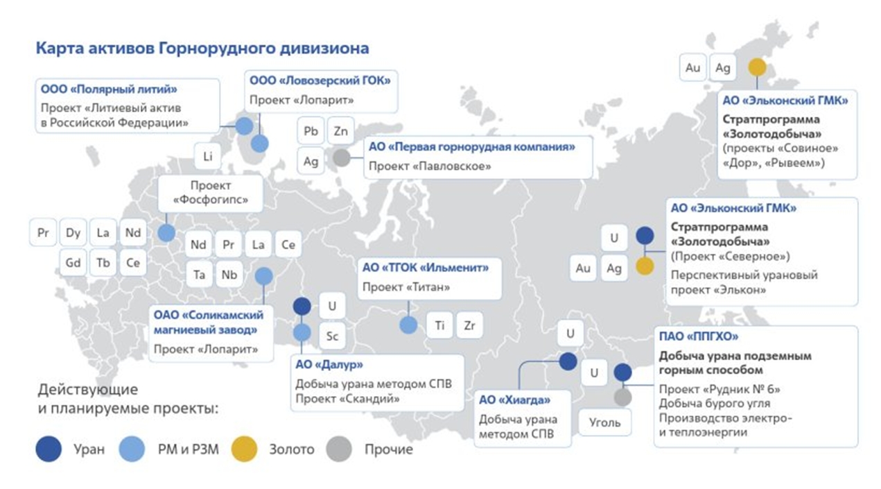 Рідкоземельні метали входять до списку стратегічних видів сировини в РФ поряд з нафтою, природним газом, золотом, міддю, нікелем та титаном.