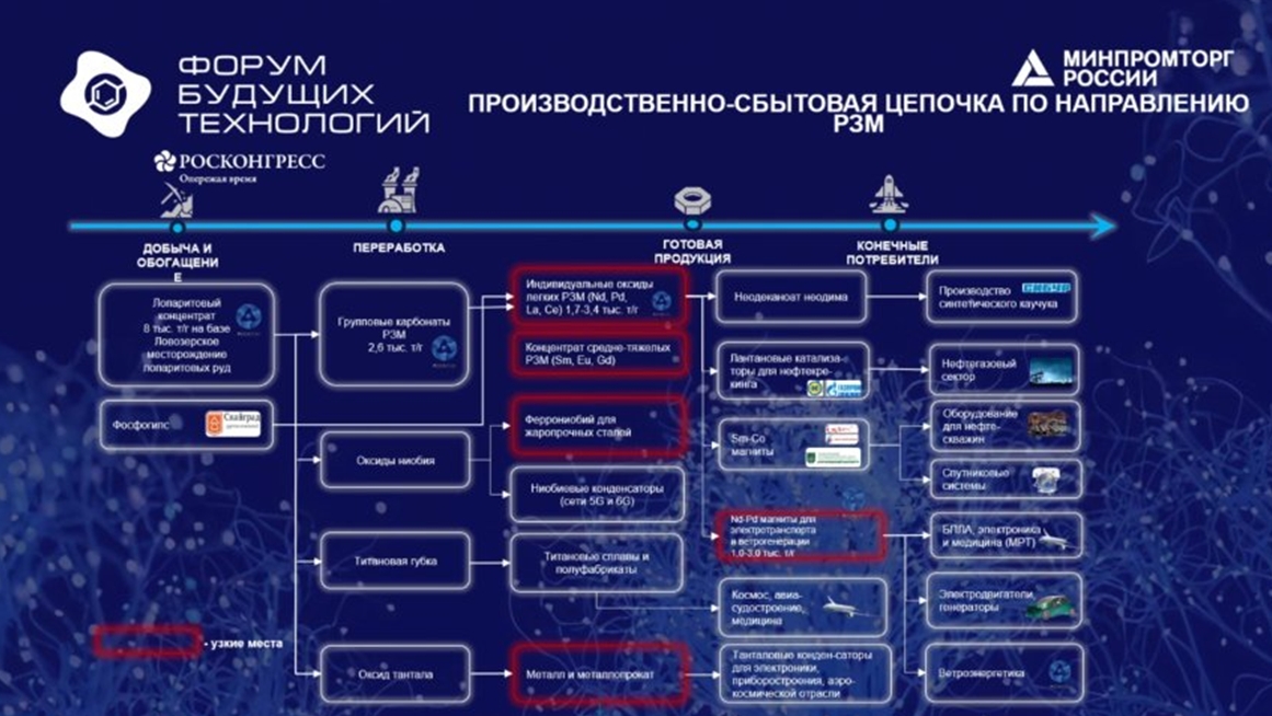 Передбачалося, що до 2024 року потужності з виробництва рідкоземів у РФ збільшаться до 7 тис. тонн, а до 2030 року – до 30 тис. тонн. Цілей на 2024 рік не було досягнуто].