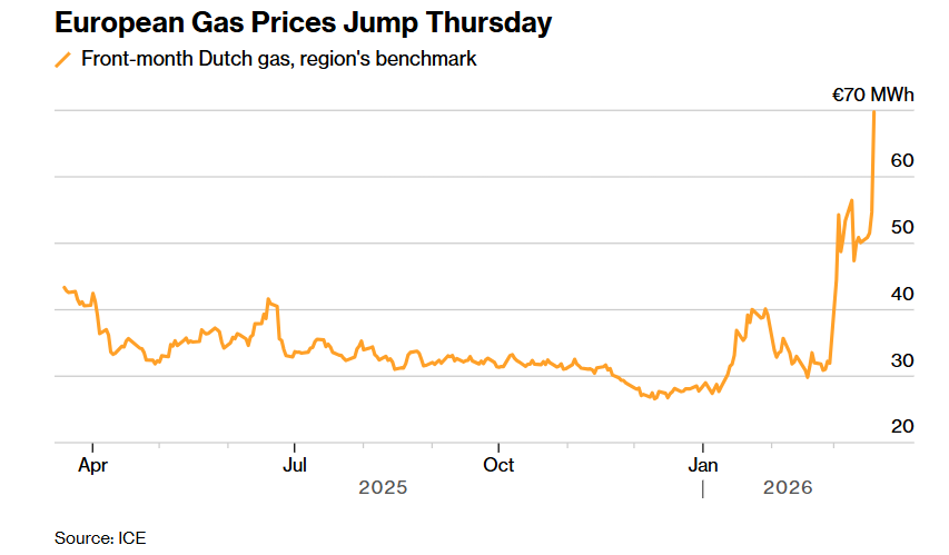 У четвер ціни на еталонні ф'ючерси підскочили на 35%, перевищивши довоєнний рівень більш ніж удвічі. Ринок готується до тривалого збитку для цього важливого хабу СПГ, який забезпечує близько п'ятої частини світових поставок.