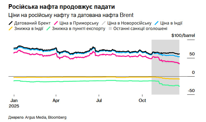 Ціни на російську нафту Urals обвалилися – Bloomberg