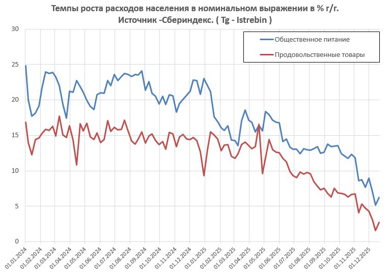 Як повідомила президентка групи X5 Катерина Лобачова, у 2025 році в Росії сповільнилося зростання споживання. Проте раніше цей показник зростав на 6-8%, зараз він сповільнився на 2%. Тож росіяни б’ють на сполох про те, що в РФ відбувається падіння темпів споживання населенням, що може призвести до системної кризи.