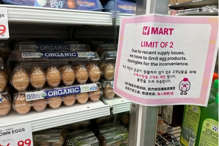 Деякі продуктові магазини почали запроваджувати обмеження на кількість яєць, які може купити покупець. До них входять Costco Wholesale (три упаковки по 24 або 48 штук на день в одні руки) і Trader Joe's (одна коробка з 12 яєць), а також мережа оптової та дрібнооптової торгівлі Sam's Club, що належить Walmart Inc.