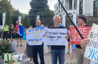 Як повідомляв «Главком» молдовські активісти щодня протестують під стінами посольства, закликаючи водіїв, що проїжджають повз, поклаксонити проти війни.