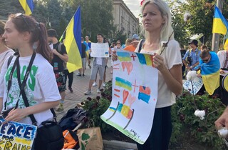 «Ми сьогодні пришли ознаменувати цю дату, шість місяців війни. Молдавські активісти принесли цілий пакет бавовни, ми виготовили її самі і її сьогодні «покладаємо» до російського посольства. Люди обурені й люті, що вже пів року ні за що вбивають українців, мирних жителів, а Україну розривають на частини. Ми чекаємо, коли це зупиниться. Ще сьогодні, в День Незалежності, ми вирішили пройти маршем до парламенту в Кишиневі й там ми співатимемо українські пісні, хвилиною мовчання згадаємо загиблих і трохи святкуватимемо День Незалежності України», – розповіла активістка та одна з організаторів заходу Діана.