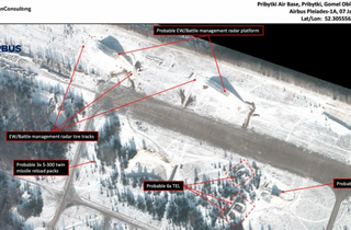 Супутник зафіксував ЗРК «С-300/400», ЗРПК «Панцир» та іншу техніку на білоруському військовому аеродромі «Зябрівка» в Гомельській області, недалеко від кордону з Україною. Про це повідомляє моніторингова група «Беларускі Гаюн» з посиланням на аналітичний центр Rochan Consulting, який опублікував фото