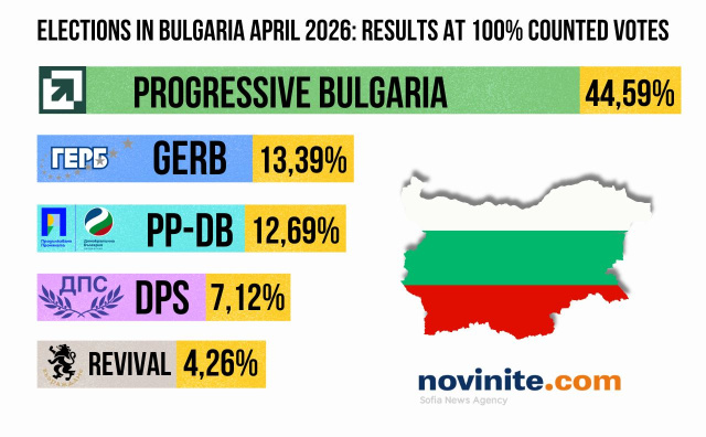 Центральна виборча комісія Болгарії завершила підрахунок 100% протоколів дострокових парламентських виборів, що відбулися 19 квітня 2026 року. Коаліція «Прогресивна Болгарія» на чолі з колишнім президентом Руменом Радевим впевнено перемогла, отримавши абсолютну більшість мандатів. Про це повідомляє «Главком» з посиланням на болгарське видання Novinite.