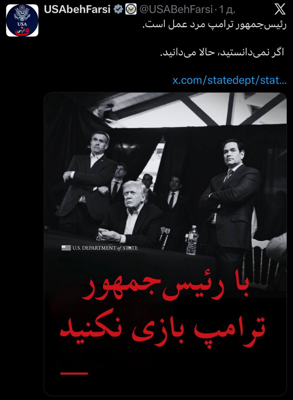 У російськомовному акаунті Держдепартамента США з'явся допис про те, що не варто «грати в ігри» з президентом Трампом