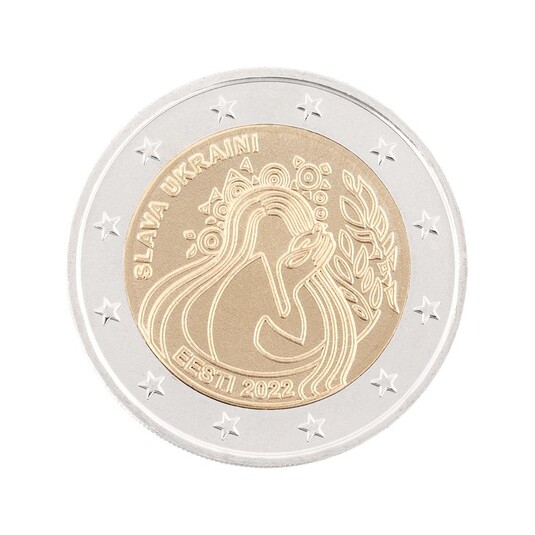 Над дизайном монети працювала українська біженка Дар’я Тітова, яка навчається у Естонській академії мистецтв. «Я почувалася винною, тому що прокидаюся від сонячних променів, а багато українців прокидаються під звуки ракет і бомб. Щоб висловити це почуття, я намалювала на монеті дівчину, яка захищає пташку в руці», – розповіла українка.