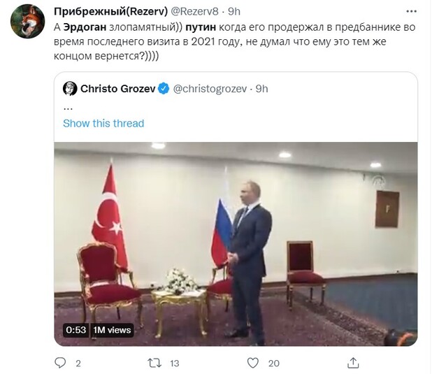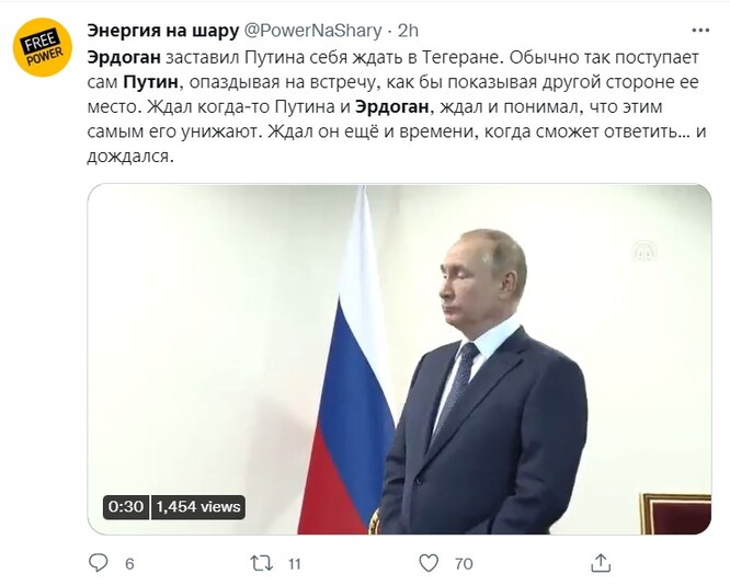 Користувачі соцмереж пишуть, що запізнення Ердогана поставило Путіна у незручне становище. Це дає зрозуміти, що дипломатичні відносини між Росією та Туреччиною змінили свій вектор.