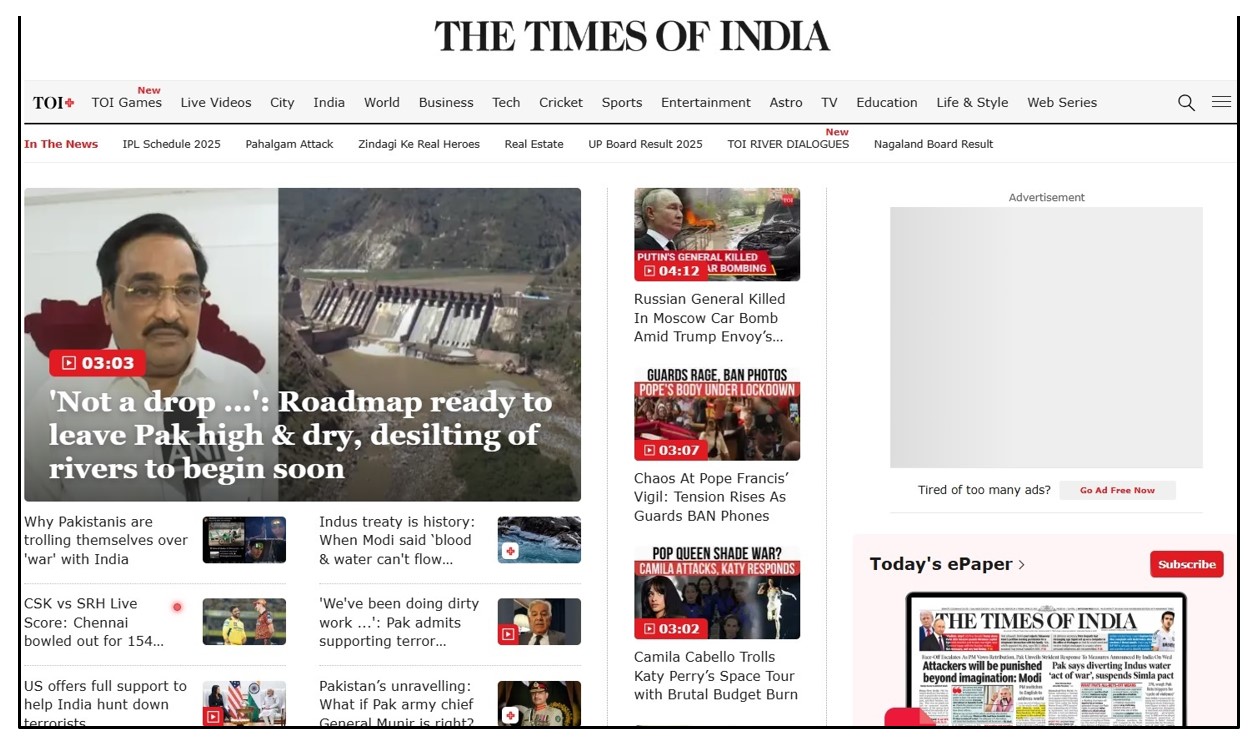 «Терористи Пахалгама виділяли жертв за релігійною ознакою. Один загиблий кашмірський мусульманин, за словами очевидців, помер, намагаючись врятувати інших», – пише газета. В іншому матеріалі Times of India пише про те, що пакистанці є нацією, що протистоїть Індії. Газета підкреслює, що напад терористів на туристів стався за тиждень після заяви командувача армією Пакистану генерала Асіма Муніра. Він назвав Кашмір «яремною веною» Пакистану і пообіцяв «не кидати наших братів-кашмірців у їхній героїчній боротьбі». «Пакистан залишається, перш за все, ідеологічним проектом – ісламською нацією, що протистоїть Індії», – пише видання. «Терористичний напад у Пахалгамі, в результаті якого загинуло щонайменше 26 індійців – це найбільший інцидент в цьому столітті (в Індії)», – пише газета, і заявляє про зв’язки пакистанської армії з групами бойовиків, що діють у Кашмирі.