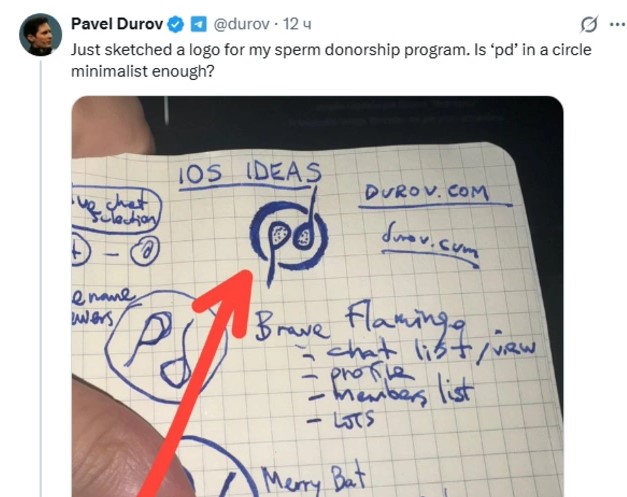 Засновник Telegram Павло Дуров, який нещодавно приголомшив мережу новиною про те, що став біологічним батьком для понад 100 дітей, знову опинився в центрі уваги. Цього разу бізнесмен продемонстрував гостре почуття гумору, відповівши на неоднозначну реакцію користувачів щодо його нового проєкту. Як повідомляє «Главком», інцидент стався у соцмережі X, де Дуров опублікував начерки логотипа для своєї майбутньої програми донорства сперми.