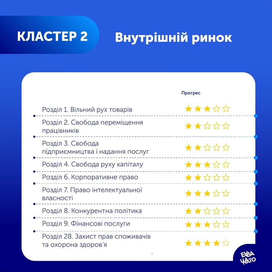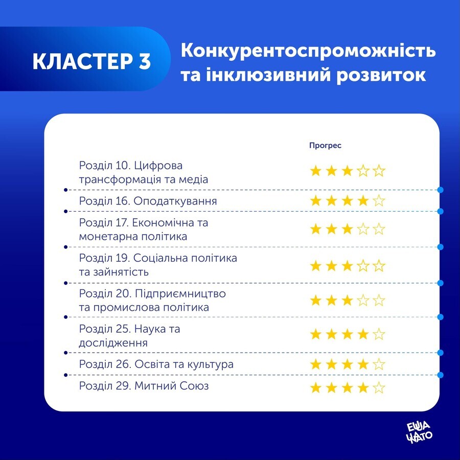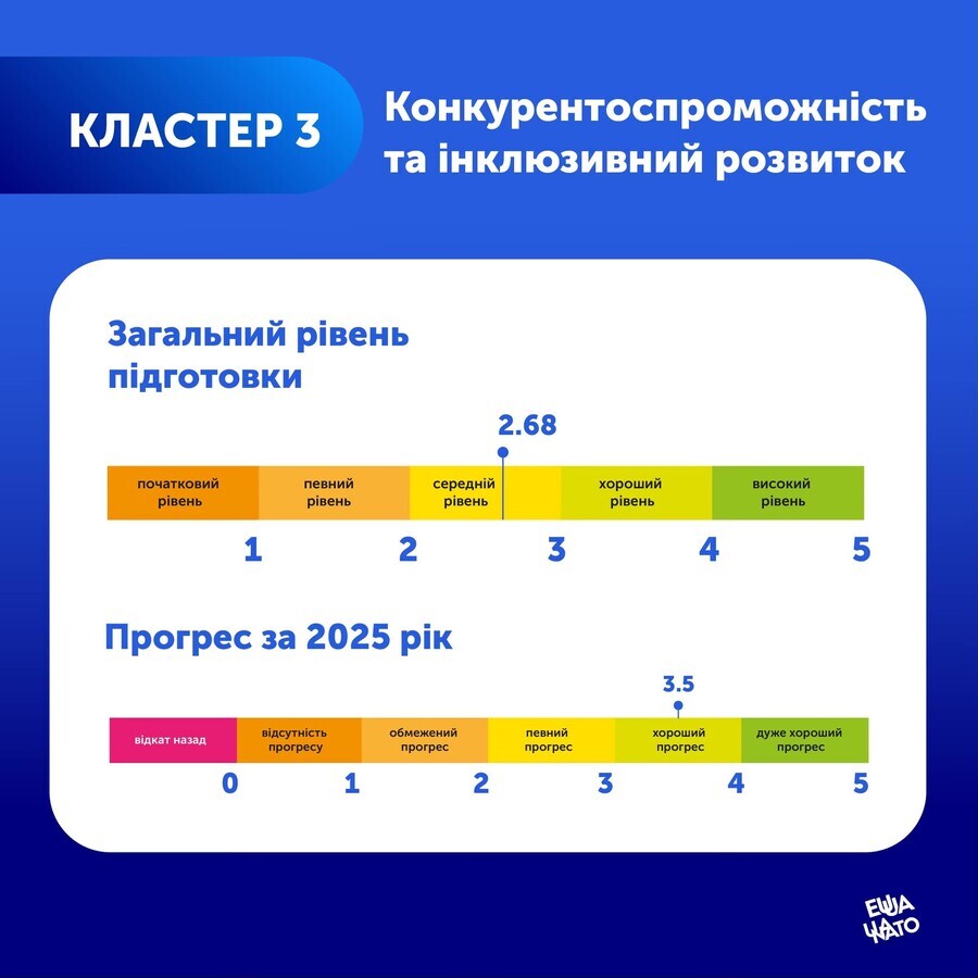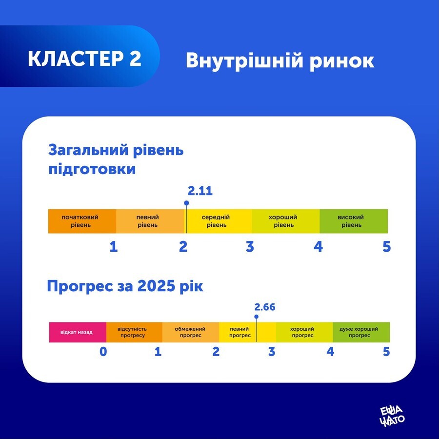 Єврокомісія позитивно оцінила економічний блок, зафіксувавши «хороший прогрес» у створенні функціонуючої ринкової економіки. Звіт підкреслює, що українська економіка «продовжує демонструвати стійкість, спираючись на обґрунтовану політику, потужну міжнародну підтримку та адаптивність приватного сектору».