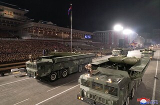 Кадри, оприлюднені державними ЗМІ, показують 11 найбільших міжконтинентальних балістичних ракет КНДР Hwasong-17. Вони мають дальність, достатню для удару ядерною боєголовкою майже в будь-якій точці світу.