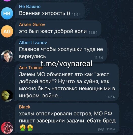 Громадяни Російської Федерації не задоволені «актом доброї волі» своєї армії, яка вивела війська з українського острова Зміїний.
