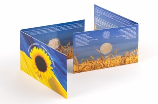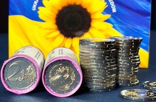 Естонія випустила 2 млн додаткового накладу монет номіналом €2. На них є напис Slava Ukraini та зображені пшеничне колося й дівчина як символ ніжності, яка захищає пташку в руці. Дизайн монети розробила молода біженка з Харкова Дарія Тітова, яка навчається в Естонській академії мистецтв.