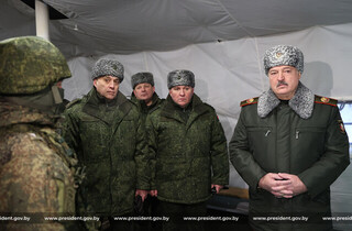 Поблизу міста Барановичі російські та білоруські мотострілецькі й танкові підрозділи, спеціальні війська та підрозділи ППО провели спільні навчання. На полігон із візитом приїхав диктатор.