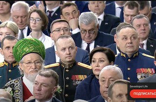 Так само можна сказати і про масовку, яка змушена була вставати через кожні кілька хвилин, аби «викупати» Путіна в оплесках: