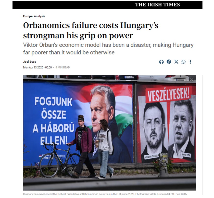 The Irish Times пише, що Орбан визнав поразку після того, як його відхилили угорські виборці, які жили за «орбаномікою» – самопроголошеною «неліберальною» моделлю, запровадженою прем’єр-міністром країни. «Її головним наслідком була централізація економічної влади та процесу прийняття рішень, одночасно підриваючи незалежні інституції. Ця модель стала катастрофою для Угорщини. Вона зробила країну набагато біднішою, ніж вона була б за інших обставин, ціни зросли стрімкіше, ніж у аналогічних країнах, через поширення корупції та погіршення стану державних послуг», – пояснює видання.