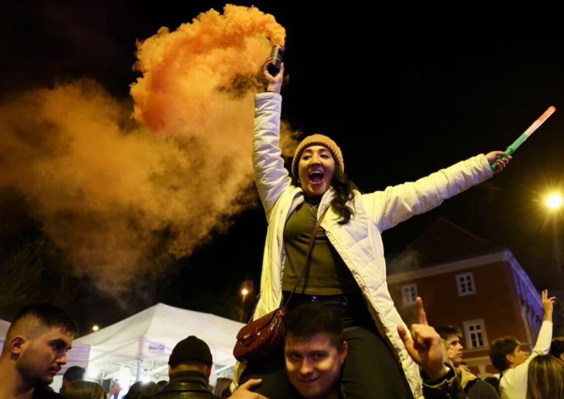 Всю ніч прихильники Мадяра святкували перемогу.