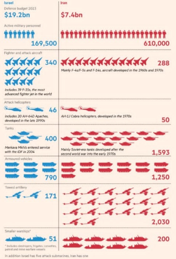 Порівняння військових ресурсів Ізраїлю та Ірану