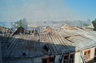 Зокрема, внаслідок пожежі, яка сталася після удару безпілотника, зруйновано дах будівлі, а всередині приміщень усе вигоріло.