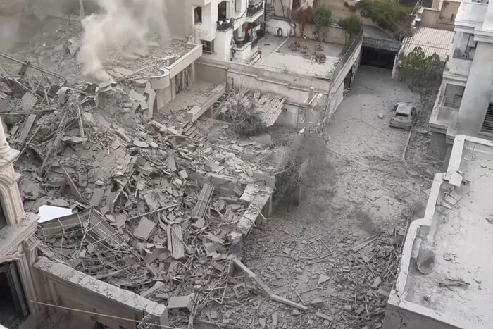 «Цю будівлю було зруйновано. Вона була поруч з нашим офісом», – сказав керівник іранського бюро RT. Він також показав пошкодження інтер’єру свого офісу.