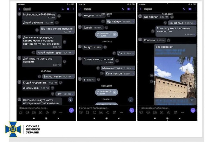 СБУ показала переписку агента ФСБ із коригувальником вогню (фото)