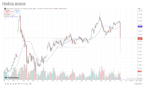Після цих заяв ціни на нафту Brent почали різко падати, стали близько $100 за барель.