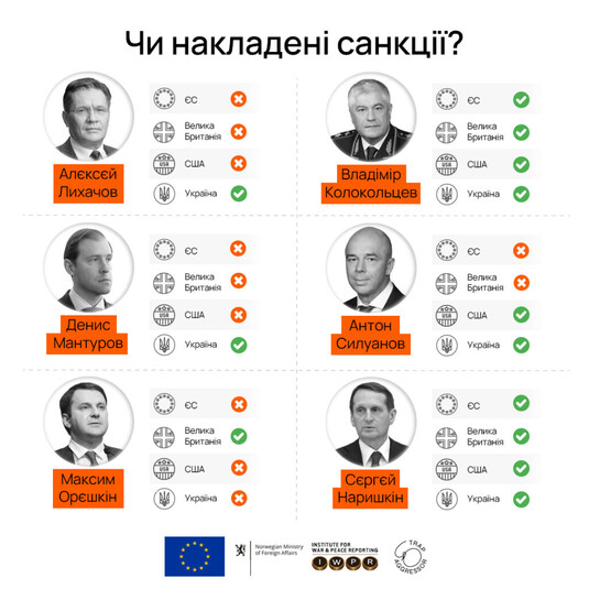 З них санкції Великої Британії не торкнулися пʼятьох членів комісії. Санкції накладені лише на Олексія Криворучка та Максима Орєшкіна.