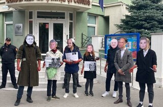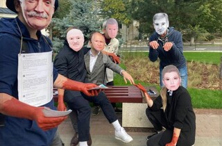 Активісти у Молдові організували перфоманс з привернення уваги до діяльності прокремлівських пропагандистів. Учасники зібралися в центрі мітингу, одягнувши маски найвідоміших російських медійників, які закликали вбивати українців та розв’язати ядерну війну, а також обмалювали свої руки червоною фарбою, в знак їхньої причетності до кривавих звірств.