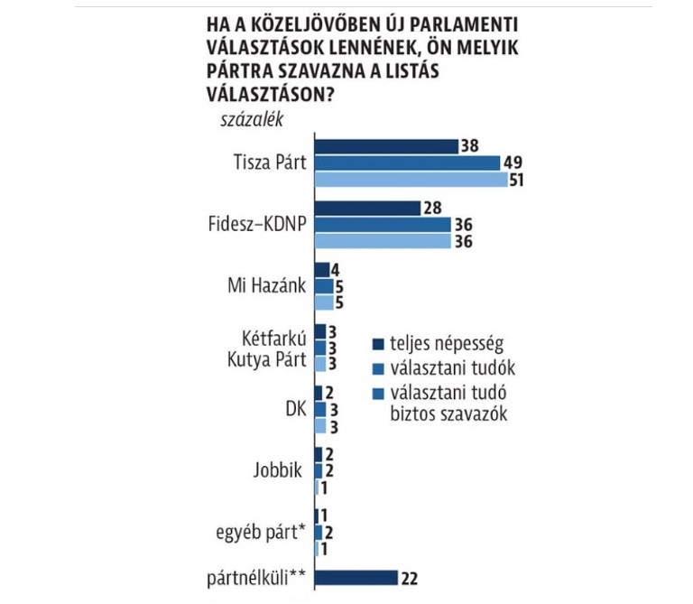 Бо ще у березні цього року (тобто до плебісциту) розрив між його партією «Фідес» та партією «Тиса» Петера Мадяра становив дев'ять відсотків. Нині ж він сягає 15% на користь «Тиси». Серед виборців, які визначилися, за опозиційну політсилу готові проголосувати 51%, за провладну – 36%. Таким є дані свіжого опитування, проведеного на замовлення згадуваного вище видання HVG.