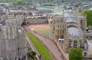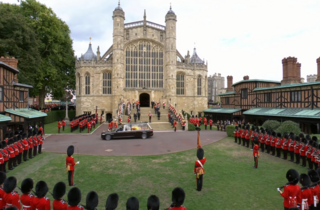 Біля Арки труну королеви перемістили з лафета на катафалк. За процесом спостерігали члени королівської родини. Король Чарльз III, королева-консорт Камілла та інші члени монаршої родини поїхали за катафалком у Віндзорський замок на автомобілі.