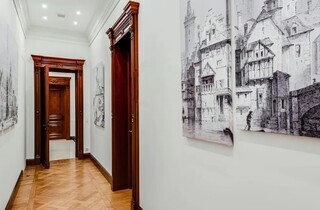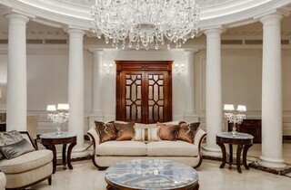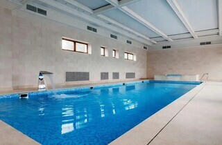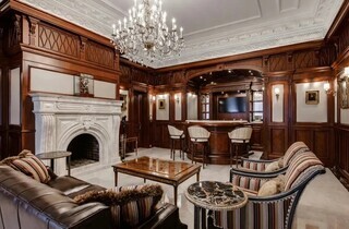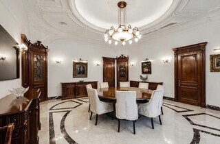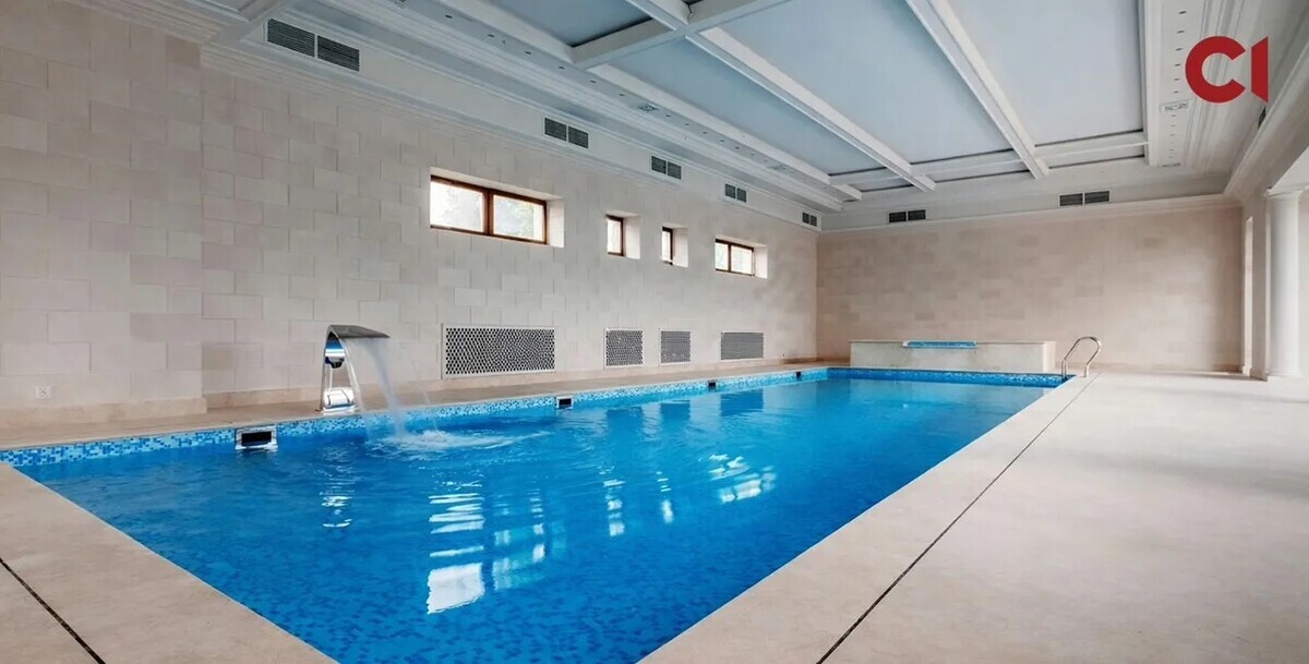 На першому поверсі є дві гардеробні, камінна зала, їдальня та кухня, гостьова спальня, кінозала, СПА-зона, басейн, кімната відпочинку, сауна, хамам, душ, купіль, тренажерний зал, кімната для персоналу та пральня.