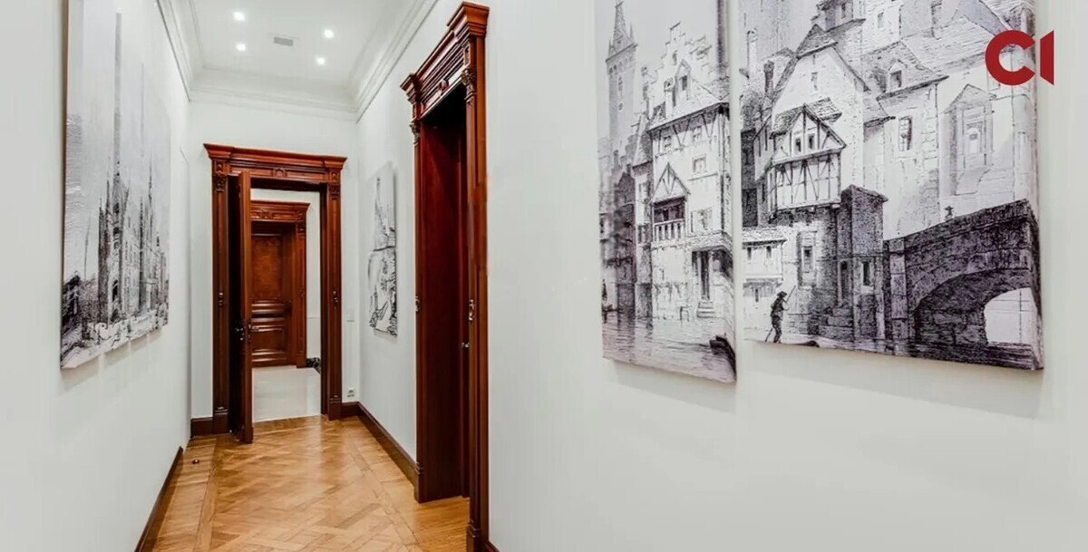 На другому – три спальні із санвузлами, кабінет, бібліотека, вітальня, сауна, душ, кімната, бар, дві гардеробні, два санвузли, дві спальні, вітальня з каміном, п’ять гардеробних і дві ванні кімнати. Зазначається, що в будинку є ліфт, прихована система відеоспостереження. На території – гараж на п’ять автомобілів і паркінг ще для п’яти авто.